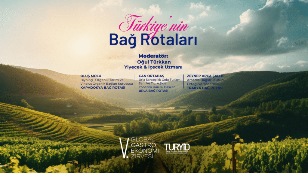 İşte bu perspektifle, 5. Global Gastro Ekonomi Zirvesi kapsamında gerçekleşen “Türkiye’nin Bağ Rotaları” panelinde Yiyecek & İçecek Uzmanı Oğul Türkkan moderatörlüğünde; Biyolog, Organik Tarım ve Şarap Üreticisi Oluş Molu, Urla Şarapçılık Yönetim Kurulu Başkanı Can Ortabaş ve Arcadia Bağları Kurucu Ortağı ve Yöneticisi Zeynep Arca Şallıel, bağların topraktan kadehe uzanan hikâyesini ele alarak Türkiye’nin bağ rotalarının bugününü ve geleceğini tartışıyor.